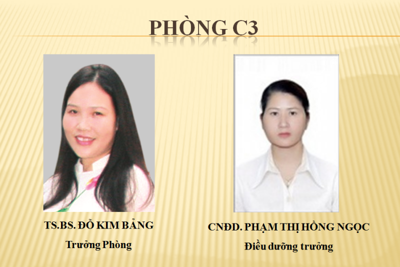 Phòng C3 là một trong những bệnh phòng đầu tiên của khoa Tim mạch, tiền thân của Viện tim mạch. Ngay từ khi thành lập Khoa Tim, phòng C3 đảm trách điều trị các bệnh nhân nặng với một đơn vị cấp cứu chỉ có 4 giường, sau này đã trở thành phòng cấp cứu tim mạch của Viện Tim mạch với trên 20 giường. Hiện nay, với yêu cầu nhiệm vụ mới phòng C3 trở thành bệnh phòng điều trị chung, thực hiện các yêu cầu mới của Viện.