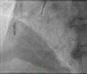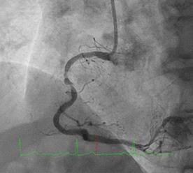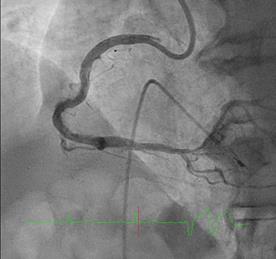 Bệnh nhân nam, 75 tuổi nhập viện tại Trung tâm tim mạch quốc gia Singapore do đau ngực không ổn định. Bệnh nhân có các yếu tố nguy cơ tim mạch như tăng huyết áp, hút thuốc, ngưng thở về đêm. Không có tổn thương thận (creatine =53umol/l). Siêu âm tim qua thành ngực không thấy rối loạn vận động vùng, chức năng thất trái tốt (EF =79%). Kết quả chụp mạch vành cho thấy động mạch liên thất trước hẹp 80%, nhánh chéo (diagonal) 1 hẹp 70%, động mạch vành phải đoạn giữa hẹp 90%, mảng vữa xơ vôi hóa mức độ nặng. Chiến lược sẽ can thiệp động mạch liên thất trước sau đó sẽ can thiệp động mạch vành phải.