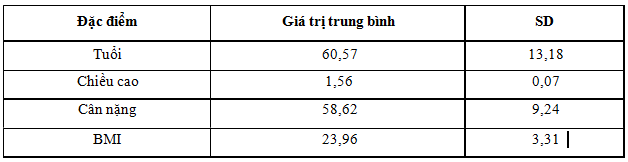 Bảng 1. Bảng giá trị trung bình về tuổi và hình thái học