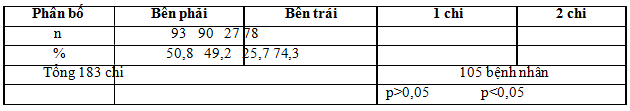 Kết quả: Tỷ lệ mắc nữ/ nam là 4/1, trong đó nữ chiếm đến 82% (p < 0,01). Tuổi trung bình của bệnh nhân là 60,57 ± 13,18. Giai đoạn lâm sàng C2 và C3 theo bảng phân độ CEAP chiếm tần suất cao nhất.