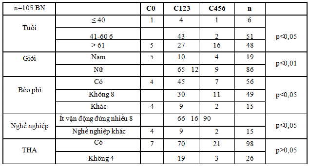 Các yếu tố nguy cơ: liên quan với nghề nghiệp, tiền sử sinh nở, giới, tình trạng thừa cân béo phì và tuổi.