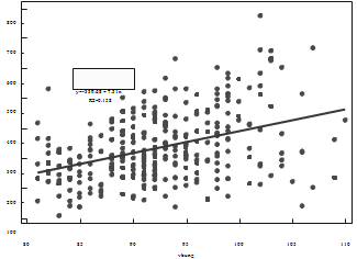 + Với SOKOLOW - LYON r = 0.195 p < 0.001 y = 2,69x + 269,95