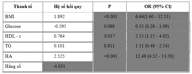 Tiến hành phân tích hồi quy logistic với các biến này ta có bảng hồi quy logistic những yếu tố góp phần tăng acid uric như sau: