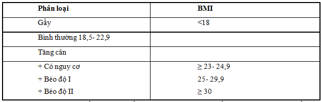 Bảng 1. Tiêu chuẩn béo phì của TCYTTG dành cho các nước Châu Á