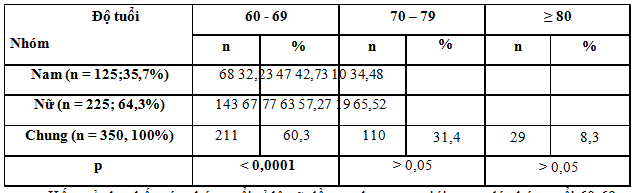 Qua nghiên cứu 350 đối tượng từ 60 tuổi trở lên, chúng tôi thu được các kết quả sau đây: