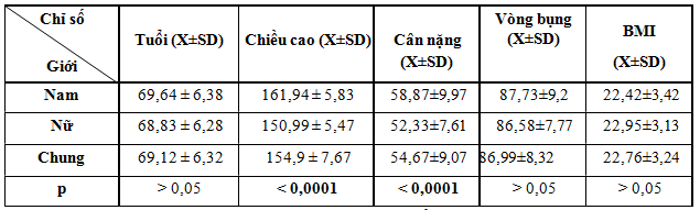 Trong nghiên cứu của chúng tôi, trị trung bình của tuổi, vòng bụng, BMI giữa hai giới tương đương nhau. Không có sự khác biệt có ý nghĩa thống kê, p > 0,05. Tương đương với kết quả nghiên cứu của Phạm Hữu Tài [9], Nguyễn Đào Dũng [2].