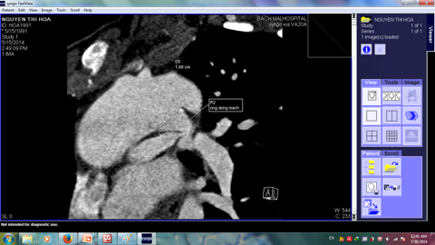 Sau đình chỉ thai, bệnh nhân đã được chụp MSCT hệ mạch phổi xem xét khả năng phẫu thuật sửa chữa toàn bộ. MSCT cho chẩn đoán PA-VSD, giãn nhẹ gốc động mạch chủ ( ĐK 45mm), động mạch phổi trái và phải có hội lưu chung, đường kính mỗi nhánh tương đối lớn ( 13 và 14 mm) , thân động mạch phổi rất ngắn, hẹp gốc động mạch phổi trái (Đk 5mm), không có tuần hoàn bàng hệ chủ phổi (MAPCAs), còn ống động mạch cấp máu cho hai phổi (Hình 2).