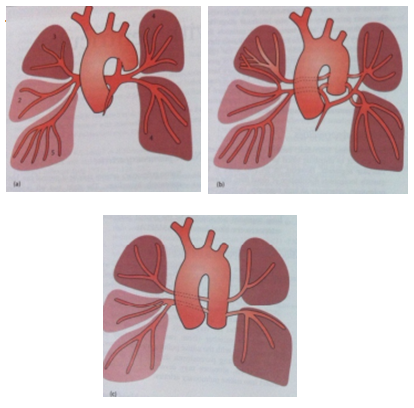 - Một đoạn mạch đồng loài hoặc khác loài. Việc tạo lập một đoạn mạch nối sớm sẽ thúc đẩy sự phát triển của mạch máu phổi, nhưng bất lợi là đoạn mạch này cần tái thay thế nhiều lần.