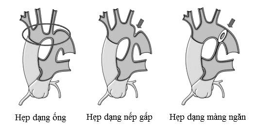 Hẹp eo động mạch chủ là tình trạng hẹp động mạch chủ ngang đoạn eo động mạch chủ, đây là dạng gặp chủ yếu trong các trường hợp hẹp mạch chủ. Nó thường được mô tả liên quan đến vị trí của ống động mạch. Hẹp eo động mạch chủ có thể trước ống động mạch, tại ống động mạch hay sau ống động mạch. Bệnh có thể gặp ở tất cả các lứa tuổi, chiếm 5-8% các bệnh lý tim bẩm sinh [9]. Có nhiều dạng hẹp eo động mạch chủ khác nhau (xem hình 1). Hẹp eo động mạch chủ có thể có dạng nếp gấp, hay còn gọi là tổn thương dạng thắt lưng, tổn thương dạng màng ngăn hoặc tổn thương dạng ống do thiểu sản một đoạn động mạch chủ.