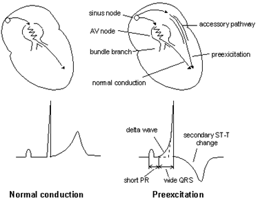 | - Sinoatrial node (S.A node): nút xoang - Atrioventricular node (A.V.node): nút nhĩ thất - Bundle branch: bó nhánh | - Normal conduction: dẫn truyền bình thường - Accessory pathway: đường dẫn truyền phụ - Preexicitation: tiền kích thích |