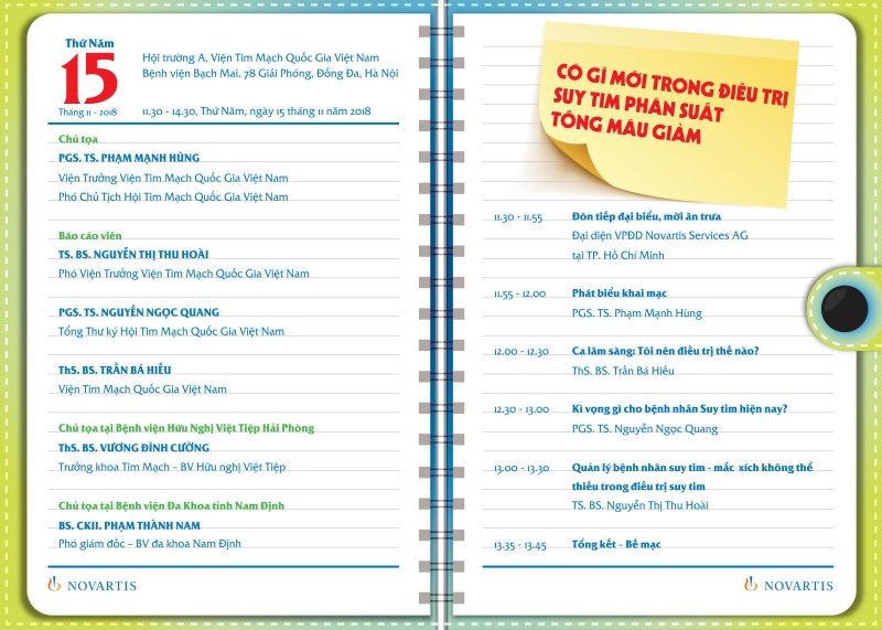 Ngày 15/11/2018 (thứ Năm) Viện Tim mạch Việt Nam phối hợp với Hội Tim mạch học Việt Nam và công ty Novartis tổ chức chương trình đào tạo liên tục với chủ đề "Có gì mới trong điều trị suy tim phân suất tống máu giảm". Chương trình sẽ được truyền hình trực tuyến tới bệnh viện Hữu Nghị Việt Tiệp Hải Phòng và bệnh viện đa khoa tỉnh Nam Định