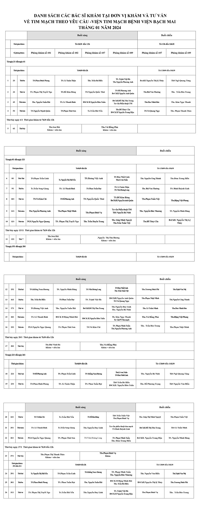 Khám và tư vấn theo yêu cầu tháng 1 - 2024