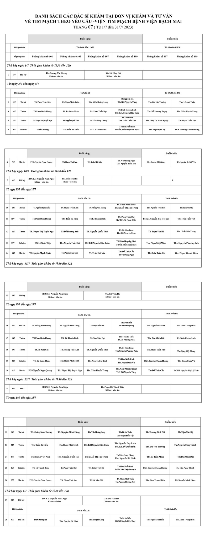 Khám và tư vấn theo yêu cầu tháng 7 - 2023