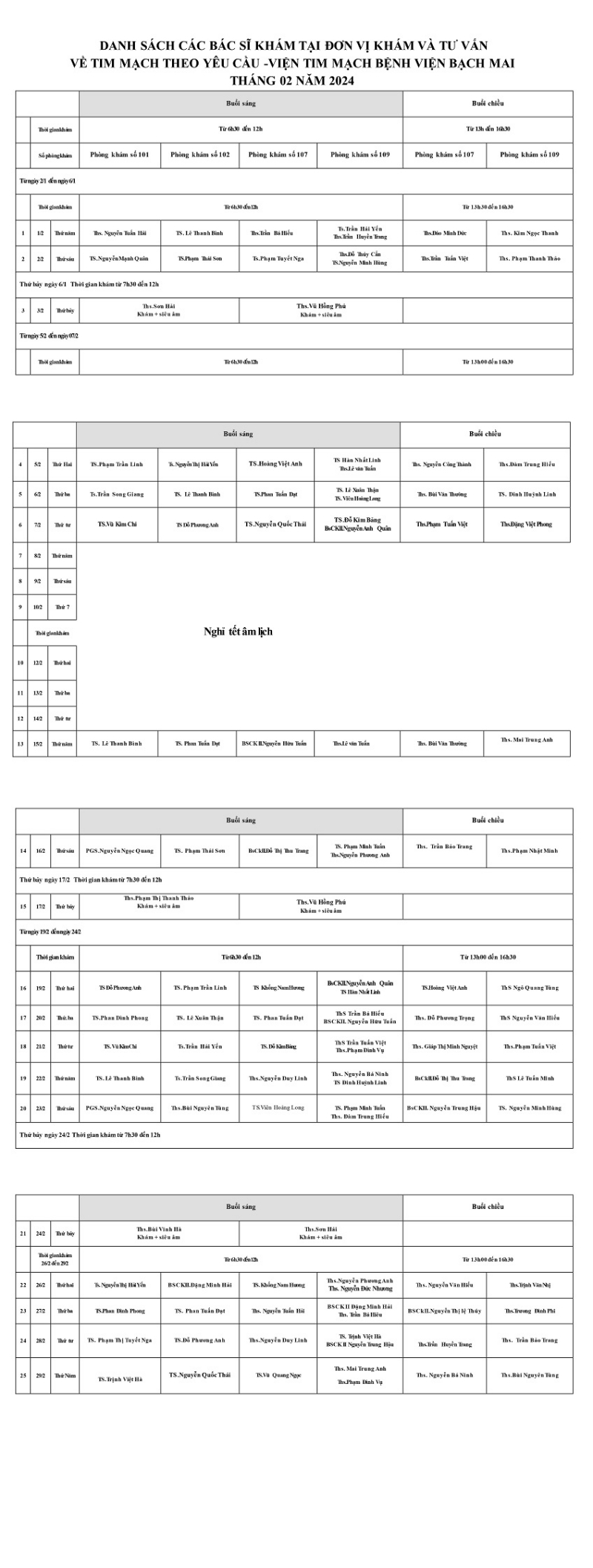 Khám và tư vấn theo yêu cầu tháng 1 - 2024