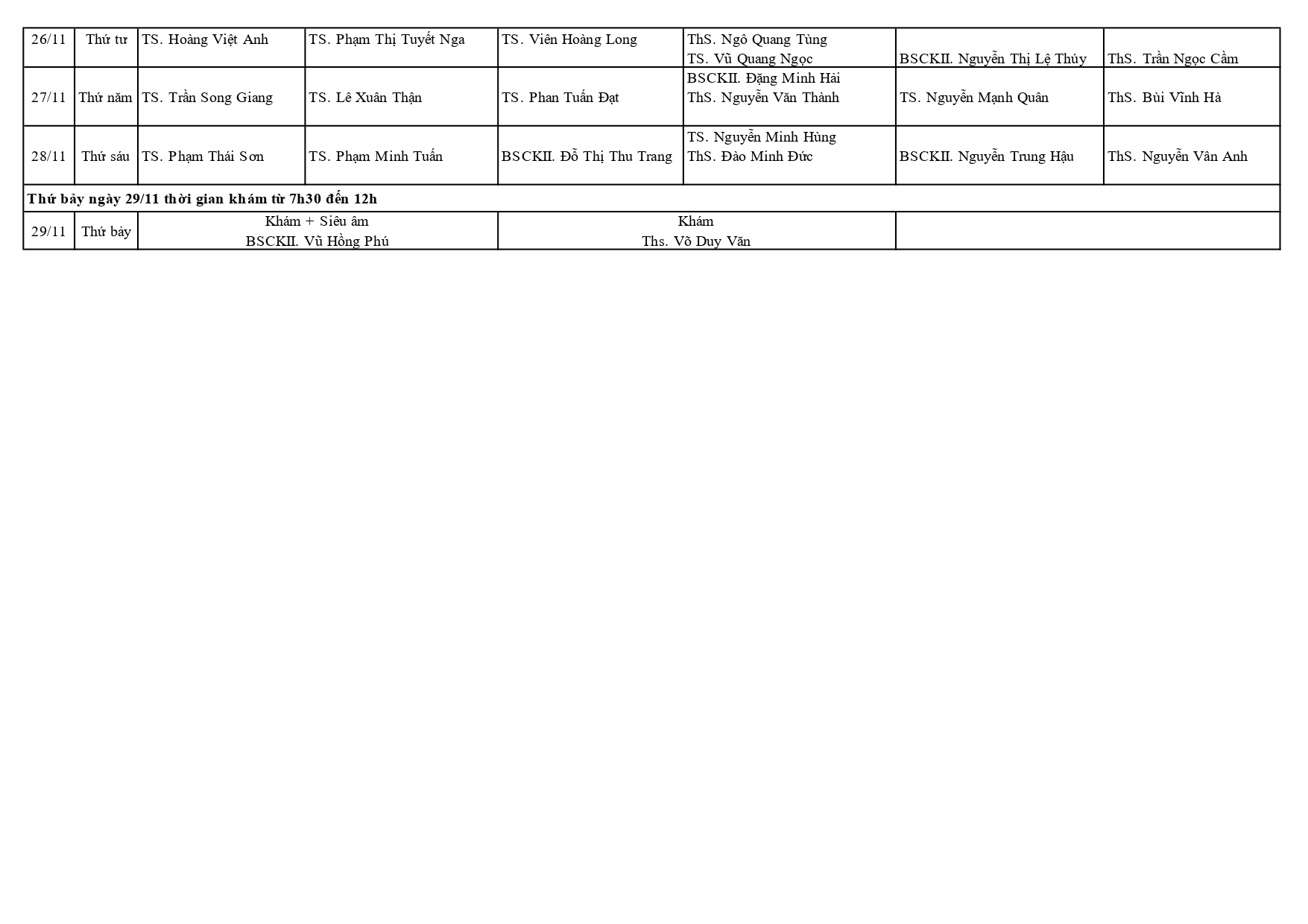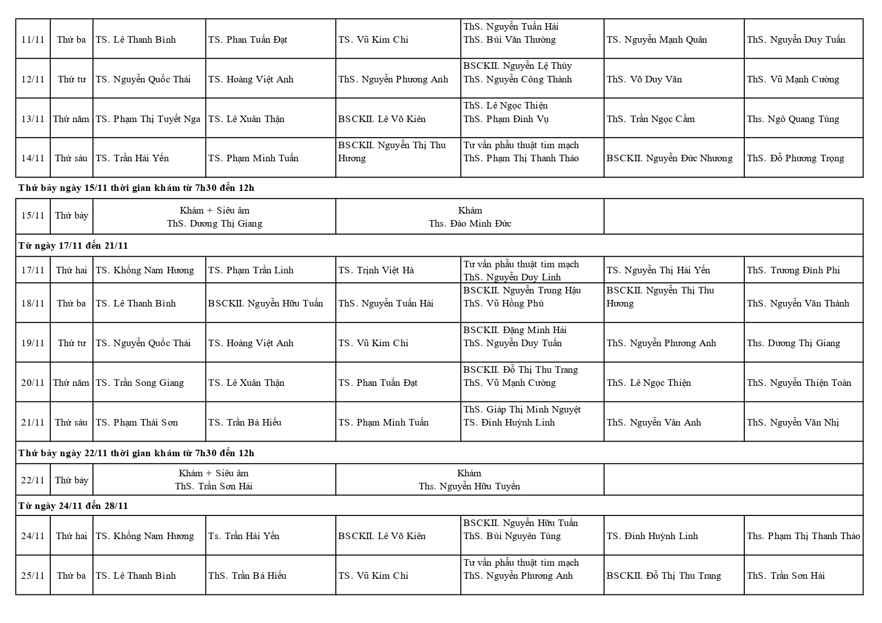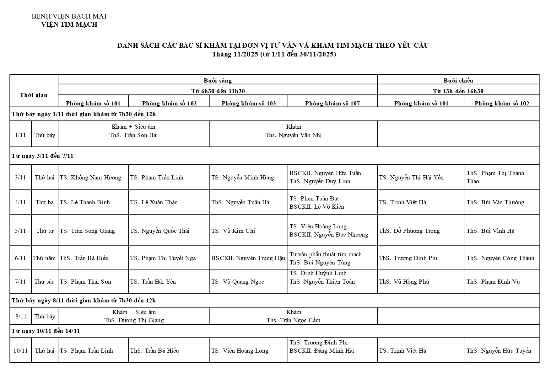 Lịch khám và tư vấn theo yêu cầu tháng 11 - 2025