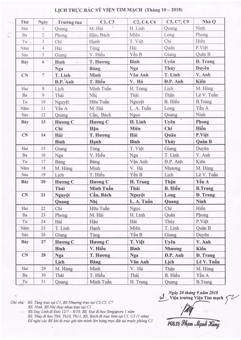 Lịch khám và tư vấn theo yêu cầu tháng 9 - 2018