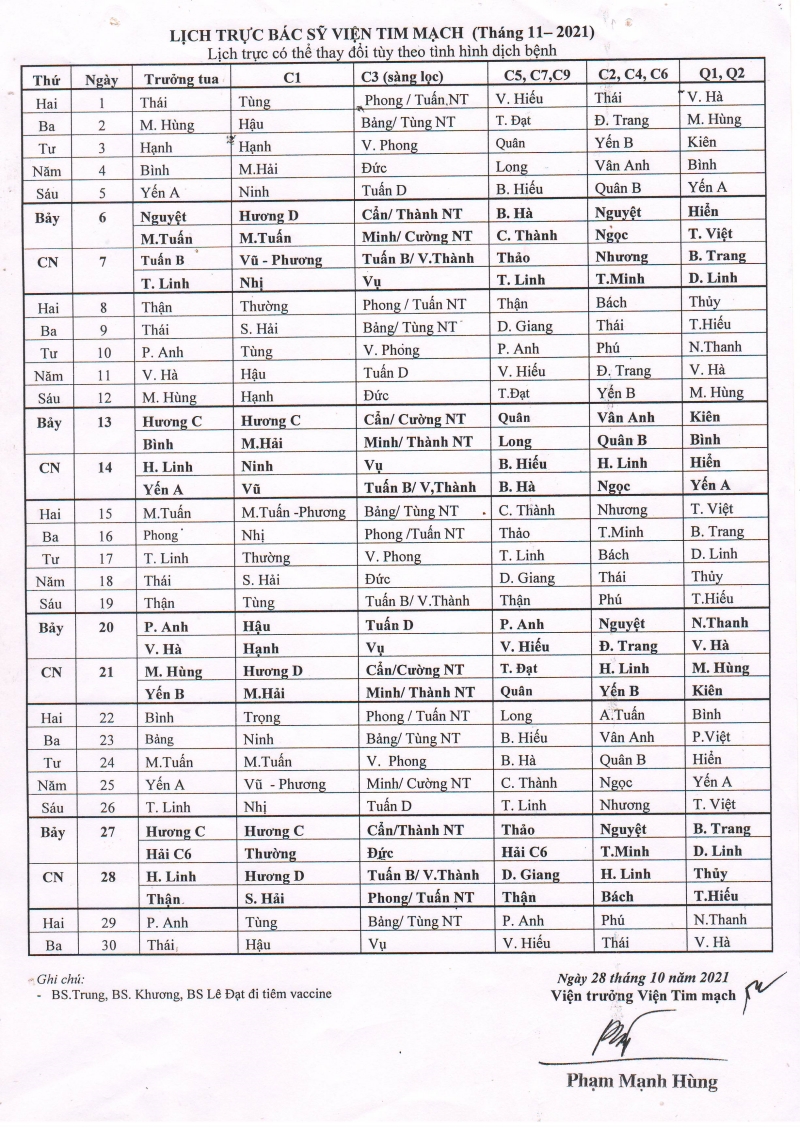Lịch khám và tư vấn theo yêu cầu tháng 10 -2021