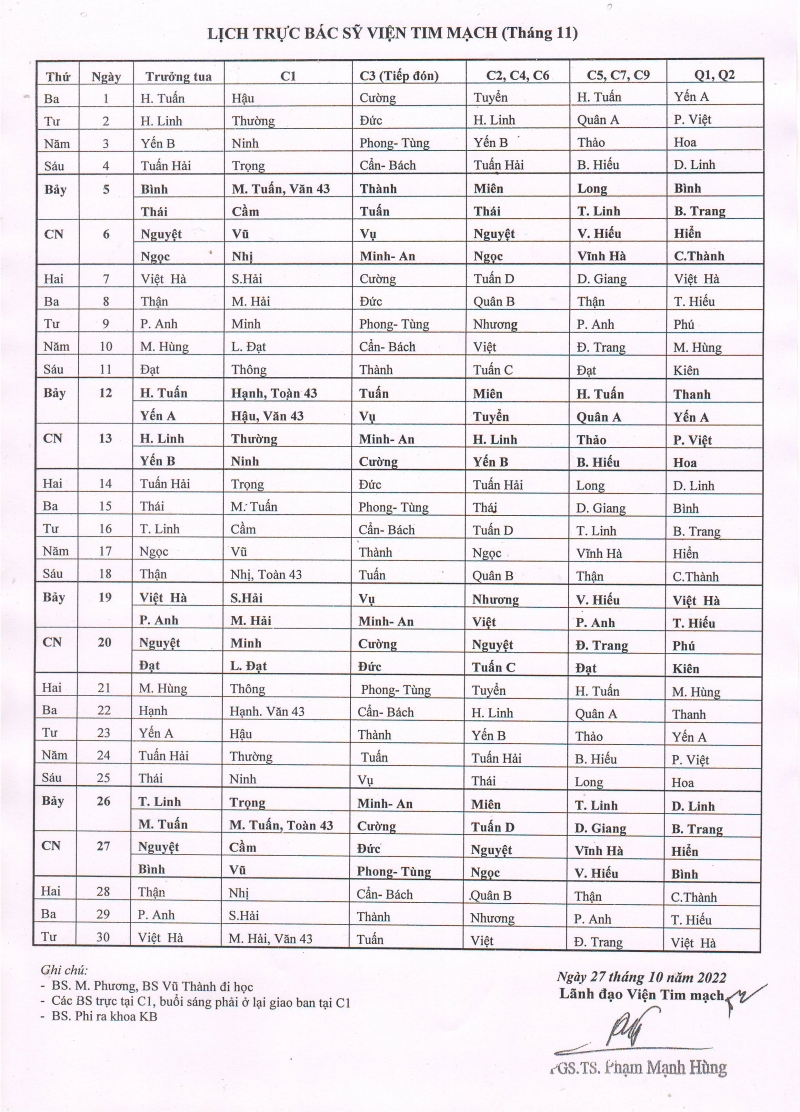 Lịch khám và tư vấn theo yêu cầu tháng 11 - 2022