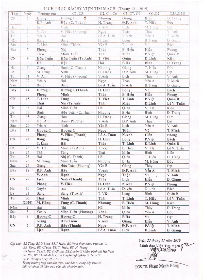 Lịch khám và tư vấn theo yêu cầu tháng 11 - 2019