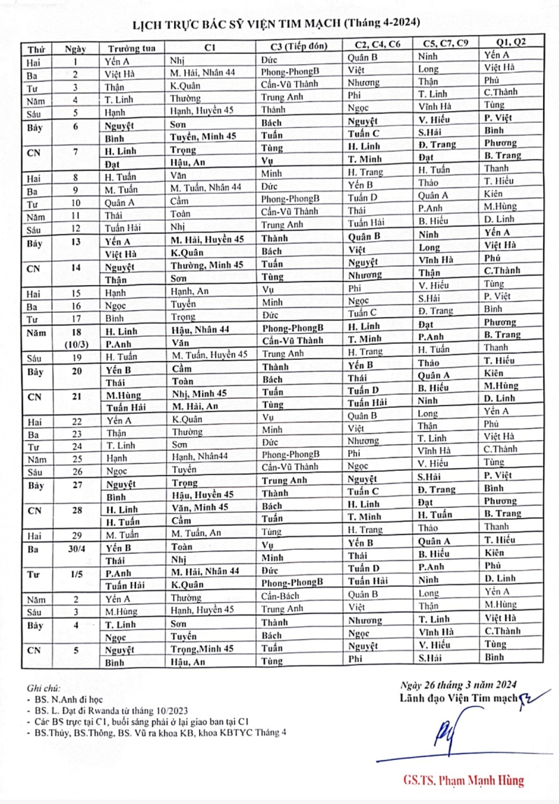 Lịch khám và tư vấn theo yêu cầu tháng 4 - 2024