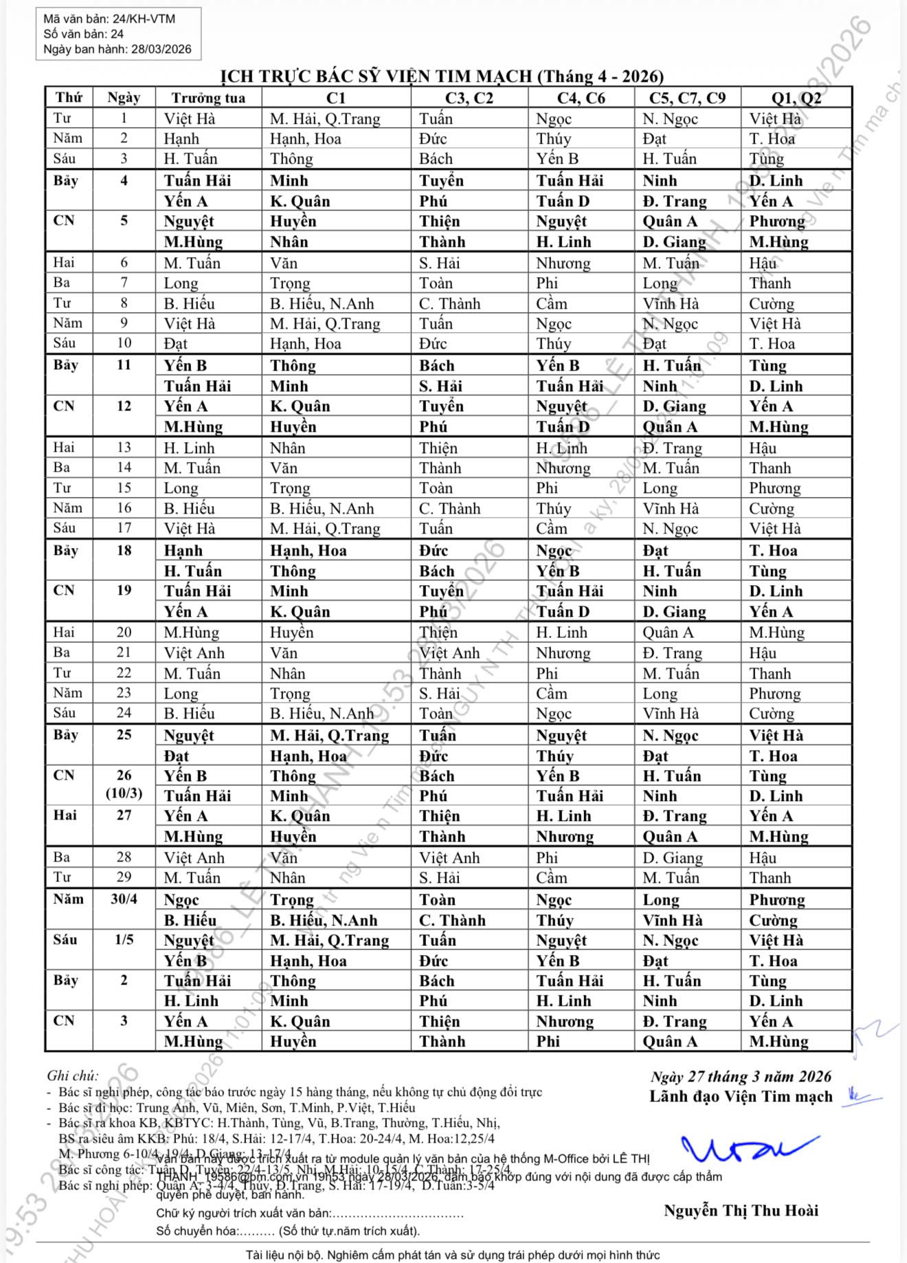 Lịch khám và tư vấn theo yêu cầu tháng 3 - 2026