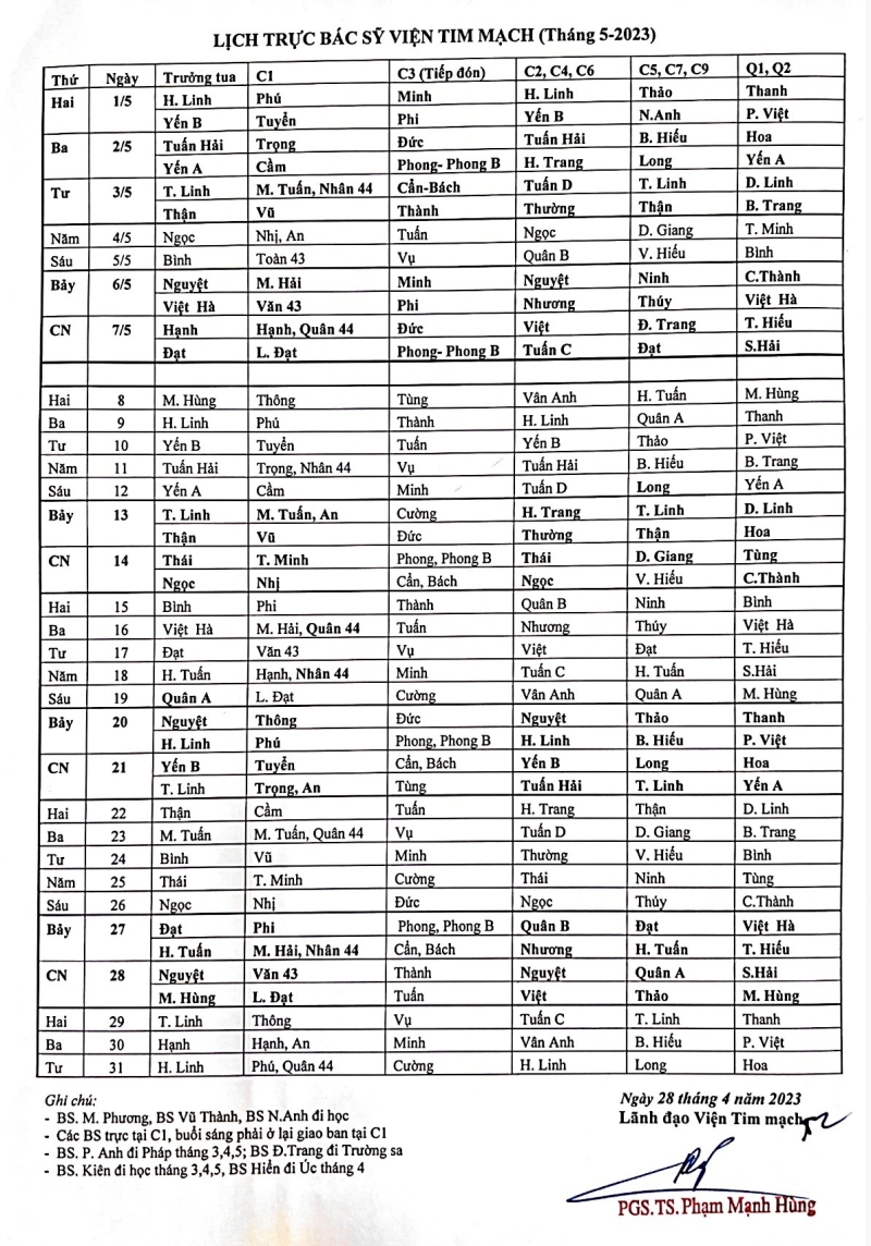 Lịch khám và tư vấn theo yêu cầu tháng 5 - 2023