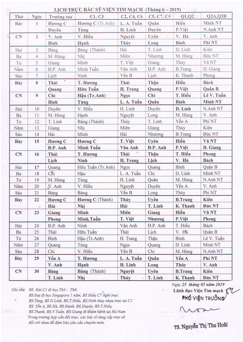 Lịch khám và tư vấn theo yêu cầu tháng 1 - 2019