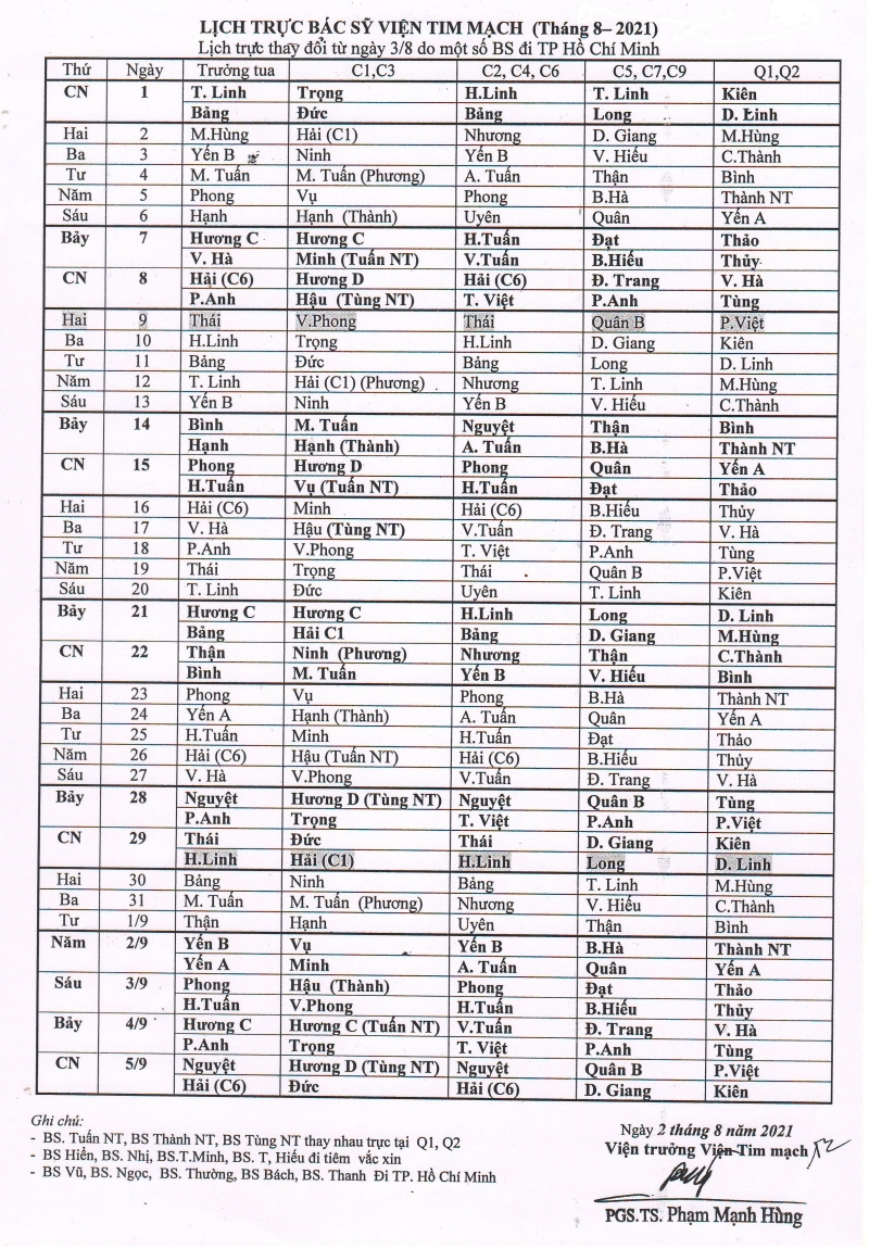 Lịch khám và tư vấn theo yêu cầu tháng 7-2021