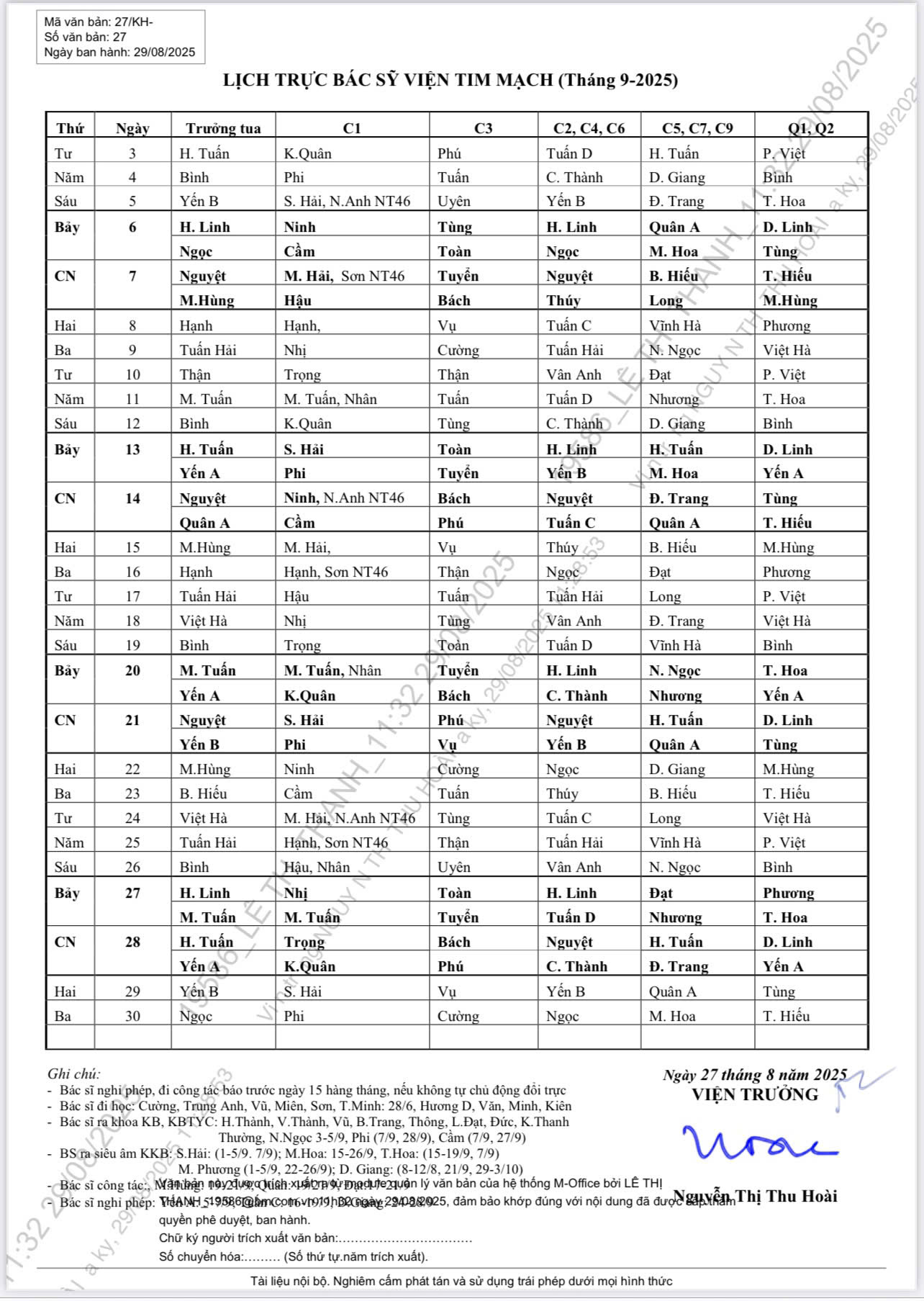 Lịch Khám và tư vấn theo yêu cầu tháng 9 - 2025