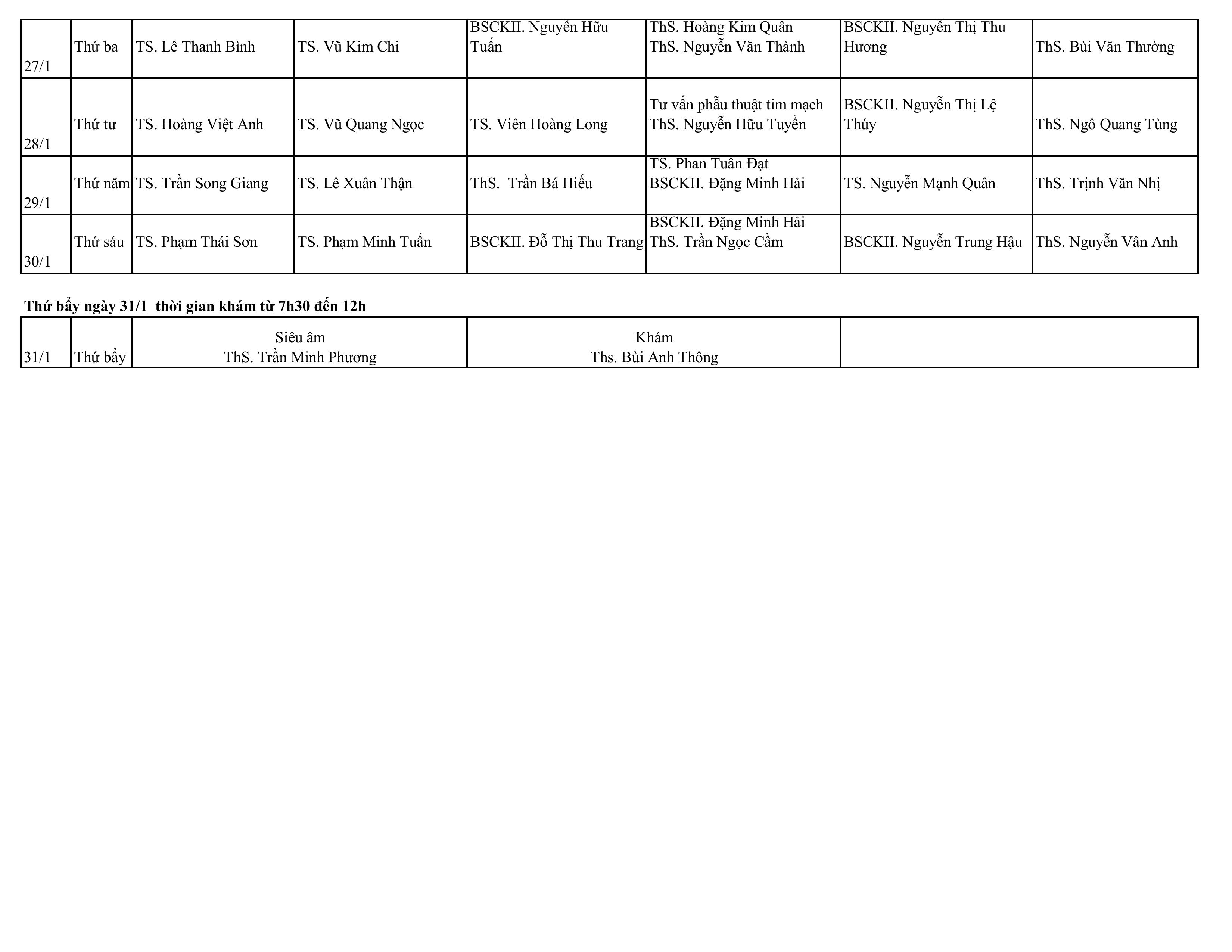 Lịch khám và tư vấn theo yêu cầu tháng 1 - 2025