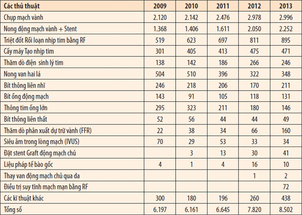Bảng 3. Số bệnh nhân được khám và can thiệp kỹ thuật cao từ 2009-2013