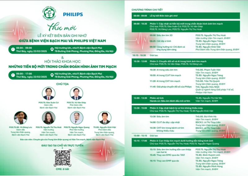 Nhằm tăng cường giao lưu hợp tác và trao đổi thông tin của các nhà khoa học trong và ngoài nước lĩnh vực chẩn đoán hình ảnh tim mạch, Bệnh viện Bạch Mai phối hợp với Công ty TNHH Philips Việt Nam tổ chức Hội thảo khoa học "Cập nhật một số tiến bộ trong chẩn đoán hình ảnh tim mạch"