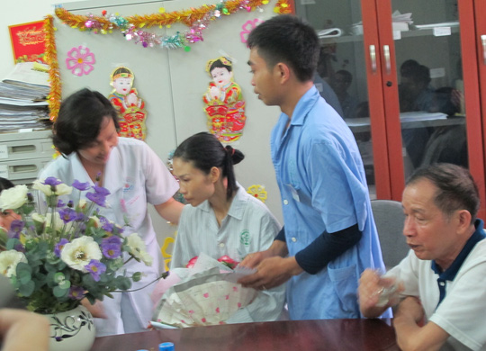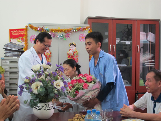Hôn lễ nho nhỏ, đầy tình người trong bệnh viện, trước giờ lên bàn mổ khiến đôi vợ chồng trẻ nghẹn ngào nước mắt. Không giấu nổi sự xúc động, cô dâu đã bật khóc trước sự quan tâm của y bác sĩ, nhân viên, bệnh nhân, người nhà bệnh nhân Khoa C8. “Em là phụ nghề cơ khí ở quê, vợ em thì làm ruộng ở nhà thôi. Hôm nay không có mặt trong ngày cưới ở quê nhưng rất xúc động vì được các bác sĩ, và những bệnh nhân khác chúc mừng, em chỉ mong vợ em qua khỏi để về quê cùng em” - chú rể Thơm khẽ ôm vai vợ, bộc bạch trước sự quan tâm của những khách mời trong “tiệc cưới” đặc biệt này.