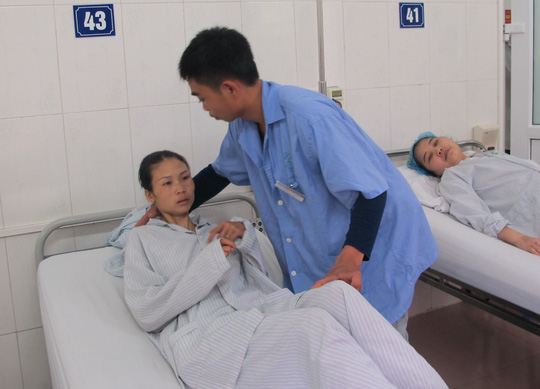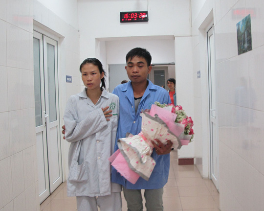 Cô dâu Hom luôn được chú rể chăm sóc tận tình ngay sau tiệc cưới trong bệnh viện