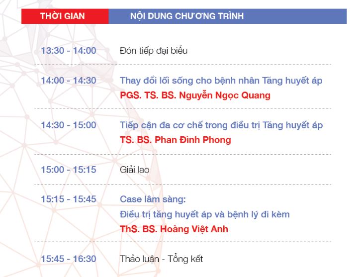 Tham gia chương trình, ngoài việc được cung cấp các kiến thức bổ ích về cập nhật chẩn đoán, điều trị tăng huyết áp và bệnh mạch vành mạn tính quý đồng nghiệp sẽ được cấp chứng nhận đào tạo liên tục của Hội Tim mạch học Việt Nam.