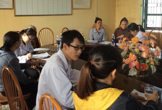 Ảnh: Đoàn công tác Viện Tim Mạch quốc gia, bệnh viện Bạch Mai đang tư vấn cho các bệnh nhân về chứng bệnh tăng Cholesterol máu gia đình tại trạm y tế xã Ninh Tiến, thành phố Ninh Bình, tỉnh Ninh Bình