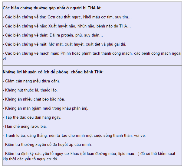 Đa số các bệnh nhân bị THA thường không có các dấu hiệu cảnh báo trước. Chỉ có một số ít các bệnh nhân THA là có một vài triệu chứng cơ năng gợi ý cho họ đi khám bệnh như: đau đầu, chóng mặt, cảm giác “ruồi bay”, mặt đỏ bừng, ù tai… Thậm chí có trường hợp khi phát hiện có triệu chứng đau đầu xuất hiện thì đã bị xuất huyết não nặng nề và đe dọa đến tính mạng bệnh nhân.