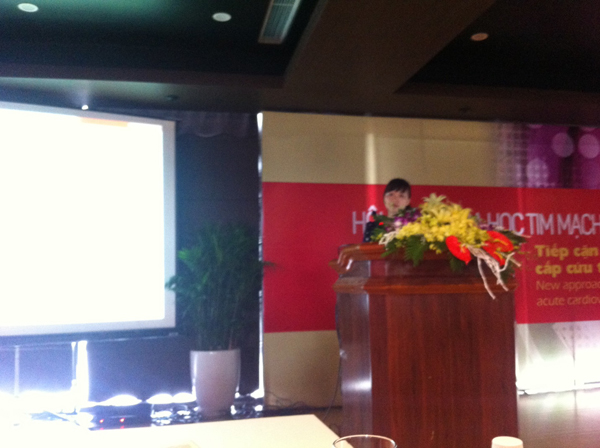 Điều dưỡng Nhung trong buổi báo cáo khoa học tại Hội nghị khoa học Tim mạch toàn quốc 2015 tại khách sạn The Reed, thành phố Ninh Bình (Ảnh: Thanh Hương).