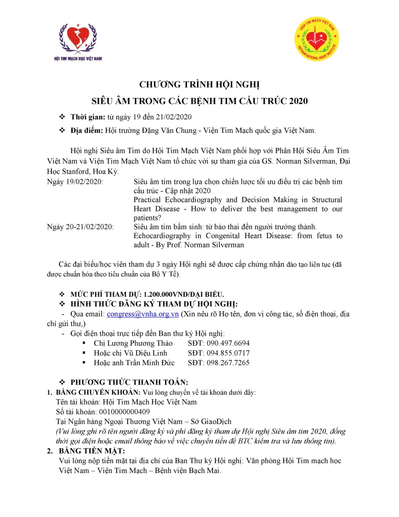 Hội nghị "Siêu âm trong các bệnh tim cấu trúc" Tweet Chương trình chi tiết xem tại: Chương trình hoi nghi sieu am tim 2020.pdf