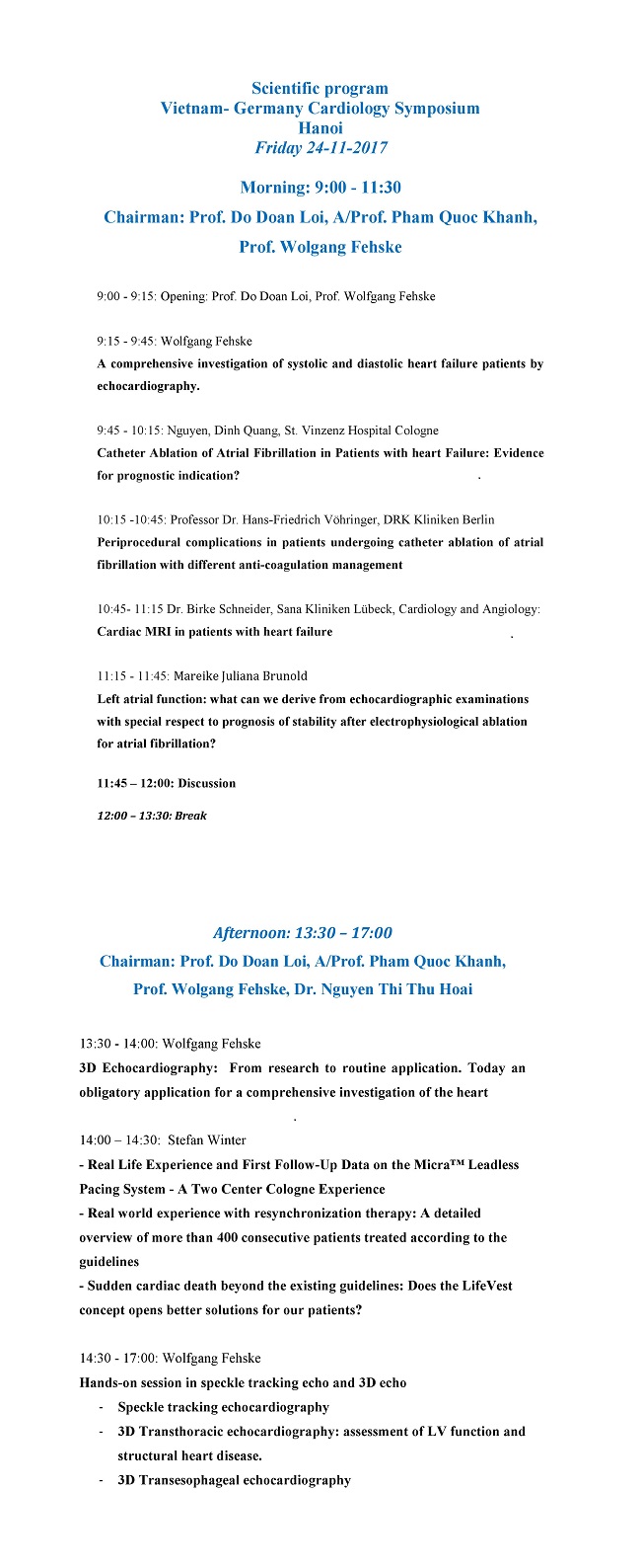 Ngày 24/11 (thứ Sáu) Viện Tim mạch Việt Nam tổ chức Hội nghị Tim mạch Đức Việt với sự tham gia của các chuyên gia Tim mạch hàng đầu đến từ Viện Tim mạch Việt Nam và Cộng hòa liên bang Đức.