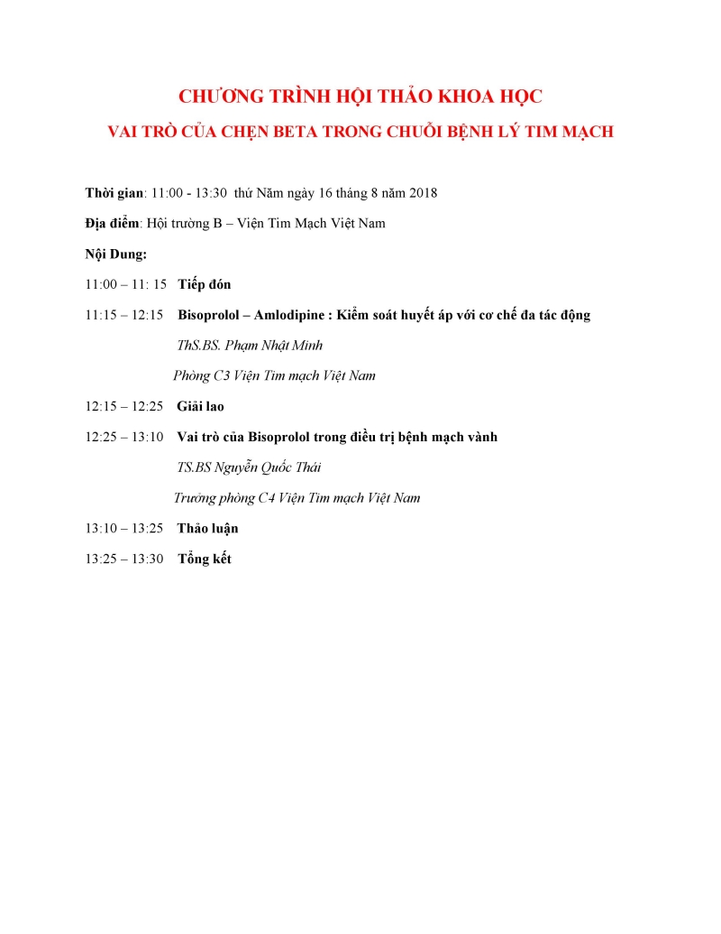 Địa điểm: Hội trường B Viện Tim mạch Việt Nam
