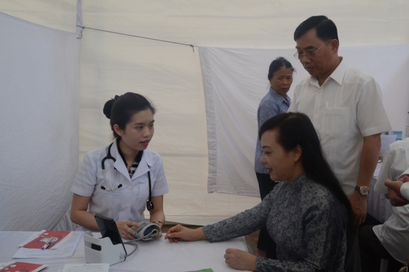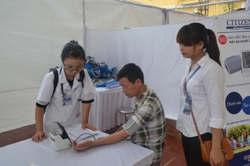 Các hoạt động đo huyết áp, tư vấn miễn phí tại UBND xã Phù Linh
