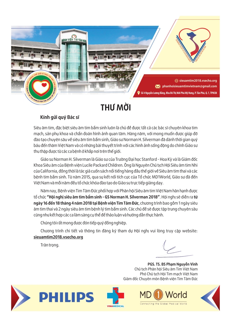 Thư mời "Hội nghị siêu âm Tim bẩm sinh - GS Norman H.Silverman 2018" Tweet Chương trình chi tiết : CHƯƠNG TRÌNH HỘI NGHỊ.pdf