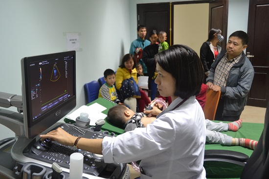 Triển khai hoạt động khám, chẩn đoán xác định bệnh tim bẩm sinh năm 2016 thuộc “Dự án Bệnh viện vệ tinh chuyên ngành Tim mạch giai đoạn 2016 – 2020”, từ ngày 12/11/2016 Trung tâm Tim mạch trẻ em Viện Tim mạch – Bệnh viện Bạch Mai phối hợp với bệnh viện đa khoa tỉnh Yên Bái đã tổ chức khám cho các trẻ đã được khám sàng lọc trước tại tuyến y tế cơ sở với các biểu hiện là còi cọc chậm lớn, hoặc là có ngất, tím tái, khó thở, có tiếng thổi ở tim, đau ngực.